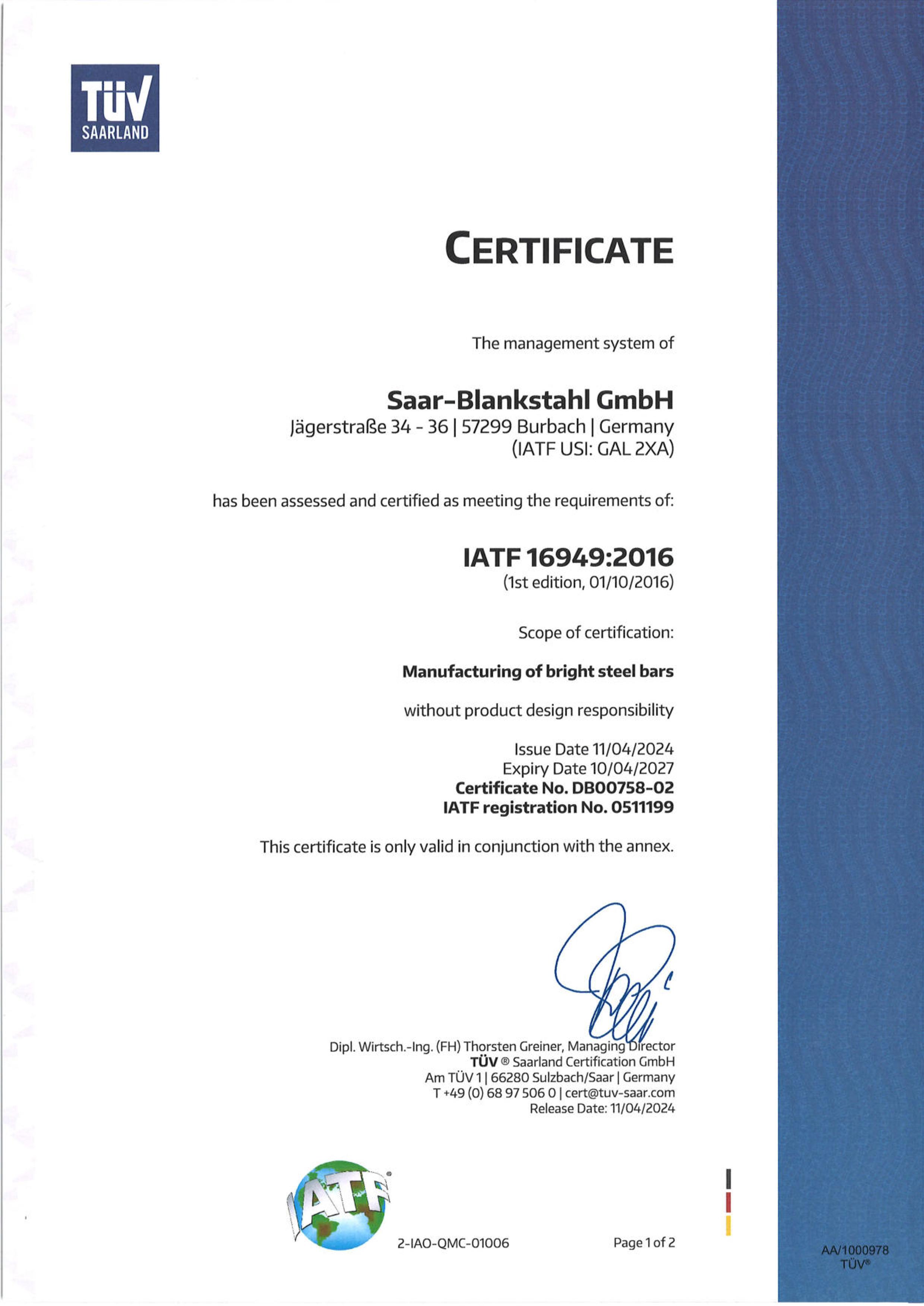 Certificates Certification - Quality Quality certificate Homburg IATF16949 300 dpi 72 dpi Quality certificate Burbach IATF16949 300 dpi 72 dpi Certification- Environment 300 dpi 72 dpi 300 dpi 72 dpi Certification - Energy 300 dpi 72 dpi 300 dpi 72 dpi Qualitätssicherungssystem für Werkstoffhersteller 300 dpi 72 dpi 300 dpi 72 dpi